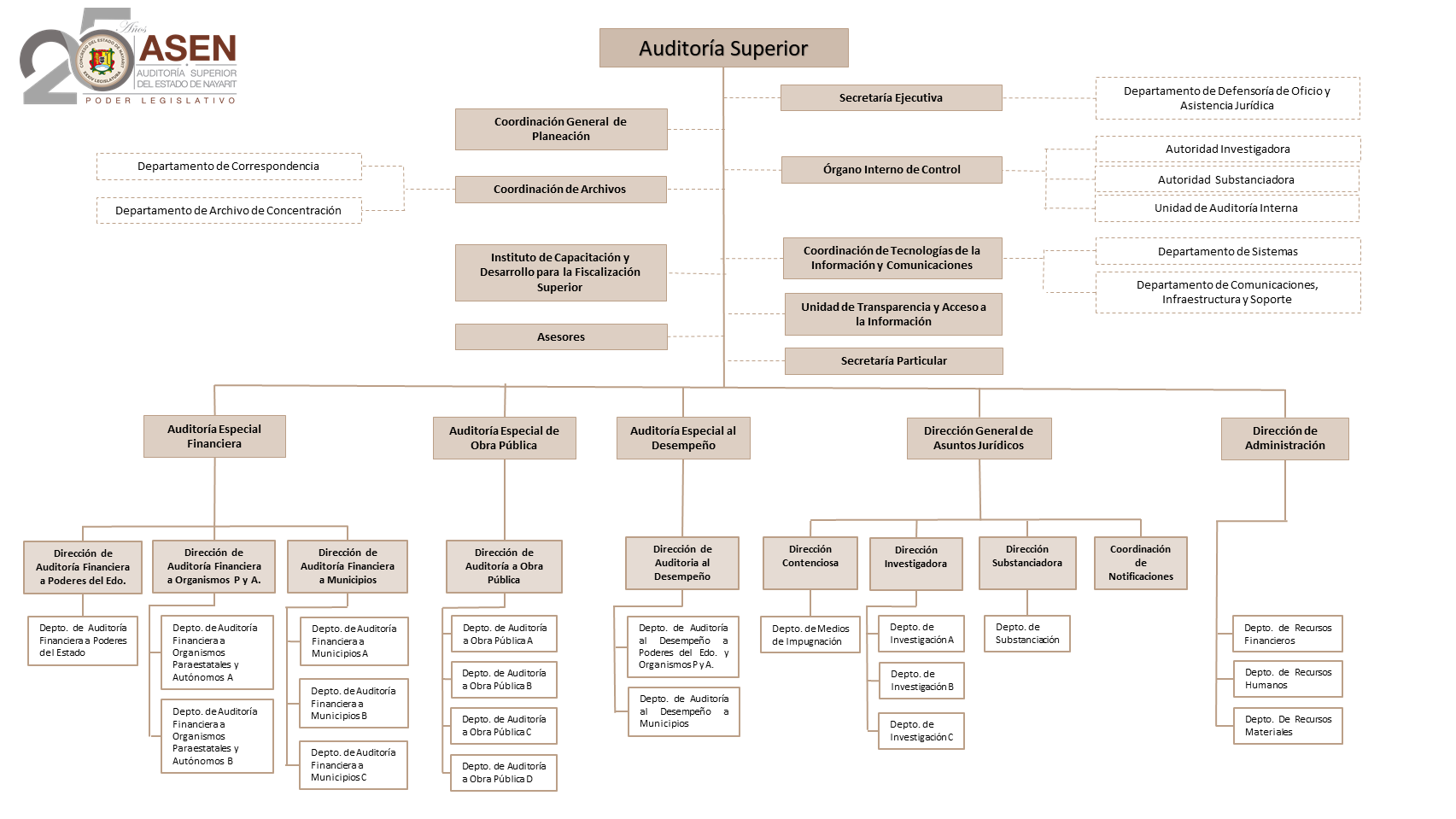 El 21 de octubre de 2000, fue publicado en el Periódico Oficial el Decreto 8281, relativo a las reformas y adiciones a los artículos 47, 58, 60 y 121 de la Constitución del Estado, en materia presupuestal, financiera, de control y fiscalización superior. Con base en estas reformas, se emitió el Decreto 8309 que contiene la Ley del Órgano de Fiscalización Superior para el Estado de Nayarit, el cual fue publicado en el Periódico Oficial el 27 de diciembre de 2000 fecha de creación de esta entidad de fiscalización bajo la denominación de Órgano de Fiscalización Superior. El 27 de mayo de 2015, fue publicada en el Diario Oficial de la Federación, el decreto por el que se reforman y adicionan diversas disposiciones de la Constitución Política de los Estados Unidos Mexicanos, en materia de anticorrupción, con base en esta importante reforma se hace necesaria una armonización a nivel local con estas disposiciones constitucionales. El 18 de octubre de 2016, fue publicado en el Periódico Oficial el decreto que reforma, adiciona y deroga diversas disposiciones de la Constitución Política del Estado Libre y Soberano de Nayarit, en materia de Disciplina Financiera y Combate a la Corrupción, mediante el cual, entre otras cosas, se cambia la denominación institucional a Auditoría Superior del Estado de Nayarit. La reforma legal producto del cambio de denominación y atribuciones de esta entidad de fiscalización fue publicada el 27 de diciembre de 2016, con el decreto por el que se emite la Ley de Fiscalización y Rendición de Cuentas del Estado de Nayarit.